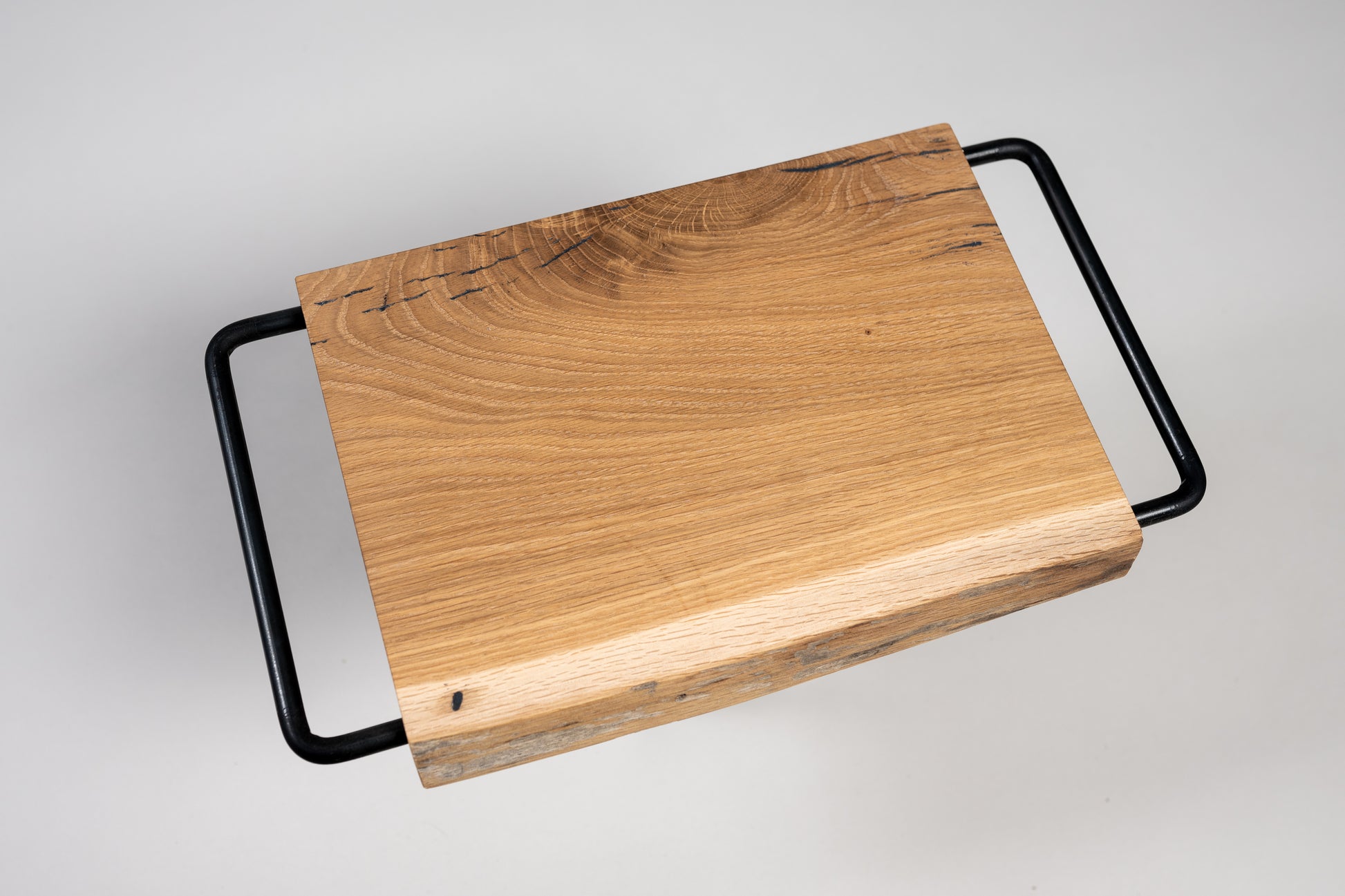 Unser handgefertigtes Vollholz - Eichebrett mit Stahlrundgriffen ist ein zeitloses und robustes Stück, das sowohl funktional als auch ästhetisch ansprechend ist.
